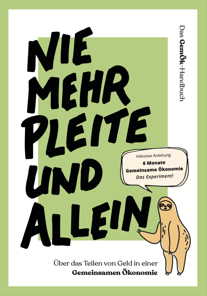 Eine sehr umfassende Einführung in das Thema Gemeinsame Ökonomie bietet das Handbuch Nie mehr pleite und allein. Es spannt den Bogen von einer motivierenden Annäherung an die Idee und ihre Hintergründe über anschauliche Erfahrungsberichte aus der Praxis bis hin zu ganz konkretem Handwerkszeug zum Loslegen. Damit richtet es sich sowohl an Neugierige, die das Konzept erst kennenlernen möchten, als auch an Gruppen, die bereit sind mit dem Geldteilen zu starten.